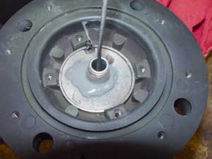 The top case (upper base) shown below has a shield and a coil wrapped around a sintered iron core. You have to remove the iron core. This core is very very hard and will not drill. I used a chisel and a 1/4" masonry bit. You have to get the whole thing out. It has to be clean all way to the top plug of the case.