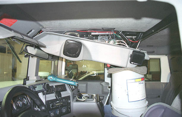 Looking at the radio from the passenger's seat you can see the aluminum angle I used to adapt the width of the monsoon amp (on top) to the radio. You can also see the black cord that is bundled up on the top right of the radio that leads to the head unit.